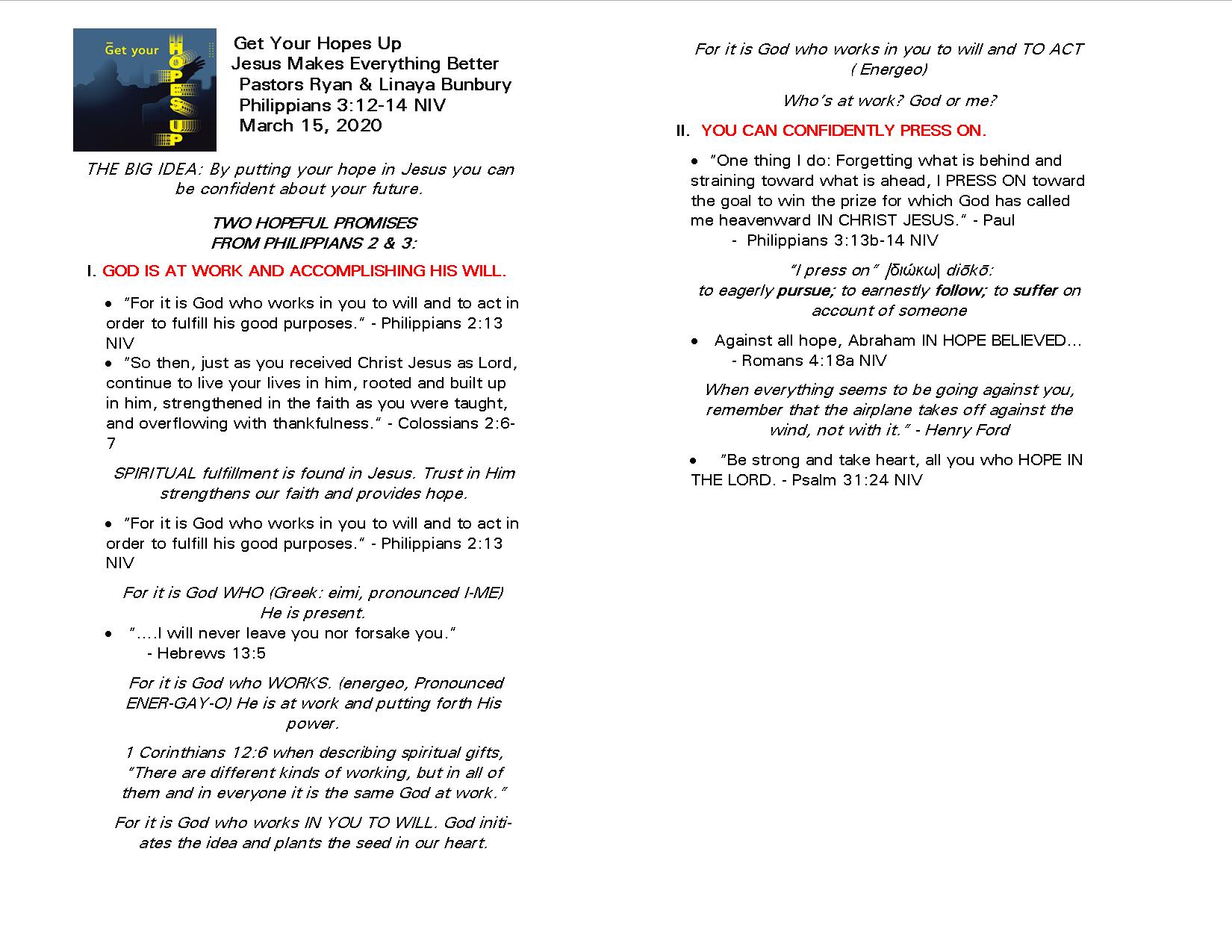 Pastor Ryan and Pastor Linaya talk about the idea of Get Your Hopes Up because Jesus Makes Everything Better. As we look at Philippians 3:12-14, we know that by putting your hope in Jesus you can be confident about your future.